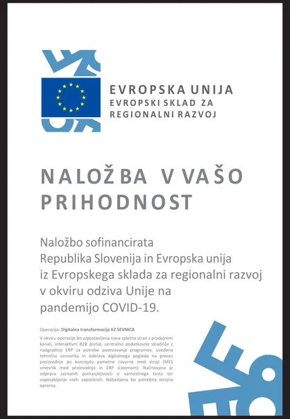 Kmečka zadruga Sevnica z.o.o. je na razpisu »Spodbude za digitalno transformacijo MSP (P4D ReactEU)«, prejela sofinanciranje za izvedbo naložbe (projekta) Digitalna transformacija KZ SEVNICA.